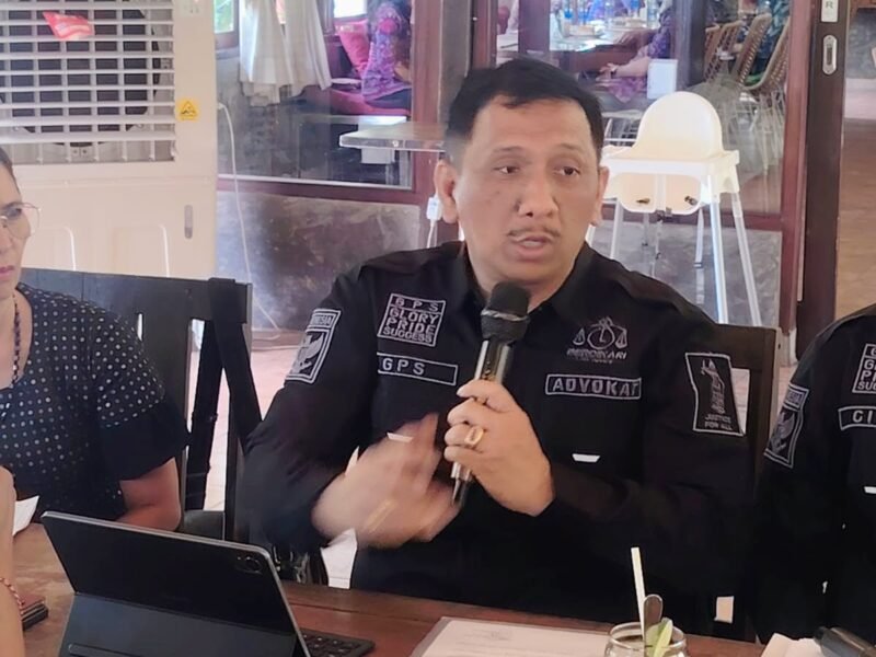Denpasar – Surya Dewata, Advokad kondang yang kerap disebut ‘Panglima Hukum’, Dr. Togar Situmorang didampingi sejumlah Advokad lintas organisasi, terutama dari DPN PERADI menggelar konferensi