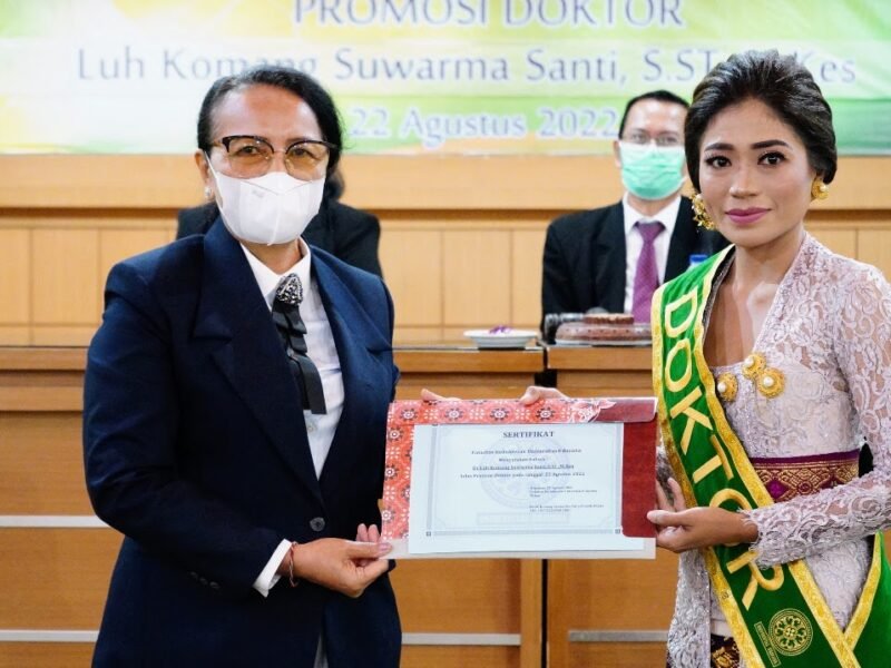 Denpasar – Surya Dewata Bertempat di ruang sidang Pascasarjana Lt III, telah berlangsung ujian Promosi Doktor dengan kandidat promovenda Luh Komang Suwarma Santi, S.ST.,M.Kes dengan