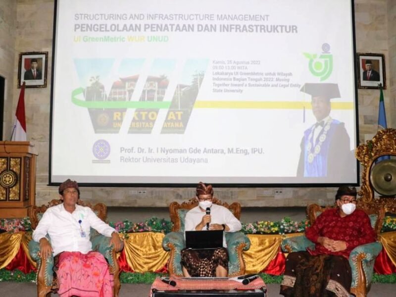 Denpasar – Surya Dewata Universitas Udayana (Unud) menyelenggarakan Lokakarya UI Green Metric untuk wilayah Indonesia Bagian Tengah 2022 pada Kamis (25/8/2022) berlangsung secara hybrid dari