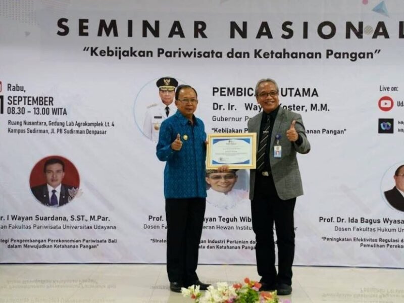 Denpasar – Surya Dewata Universitas Udayana menggelar Seminar Nasional “Kebijakan Pariwisata dan Ketahanan Pangan”, Rabu (21/9/2022) bertempat di Ruang Nusantara, Gedung Agrokomplek, Kampus UNUD Sudirman,