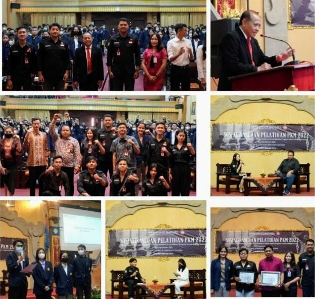Surya Dewata – Kegiatan Sosialisasi dan Pelatihan Program Kreativitas Mahasiswa (PKM) 2022 yang diadakan oleh Badan Eksekutif Mahasiswa (BEM) FH Unud berkolaborasi dengan Badan Semi