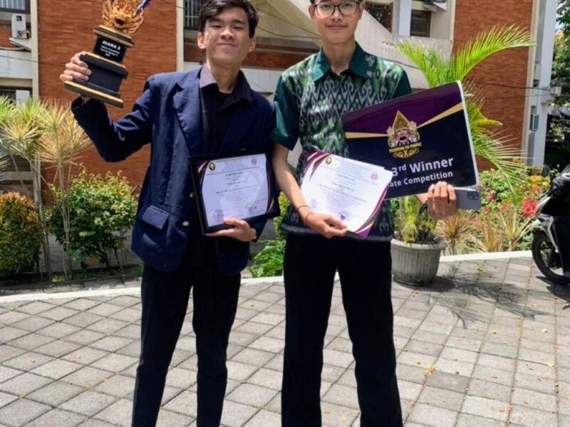 BADUNG – Sirya Dewaya Tim debat Cakra Kanigara yang beranggotakan dua mahasiswa Universitas Udayana, Ahmad Farras Zhafir dari Fakultas Pariwisata dan I Putu Martin Winata
