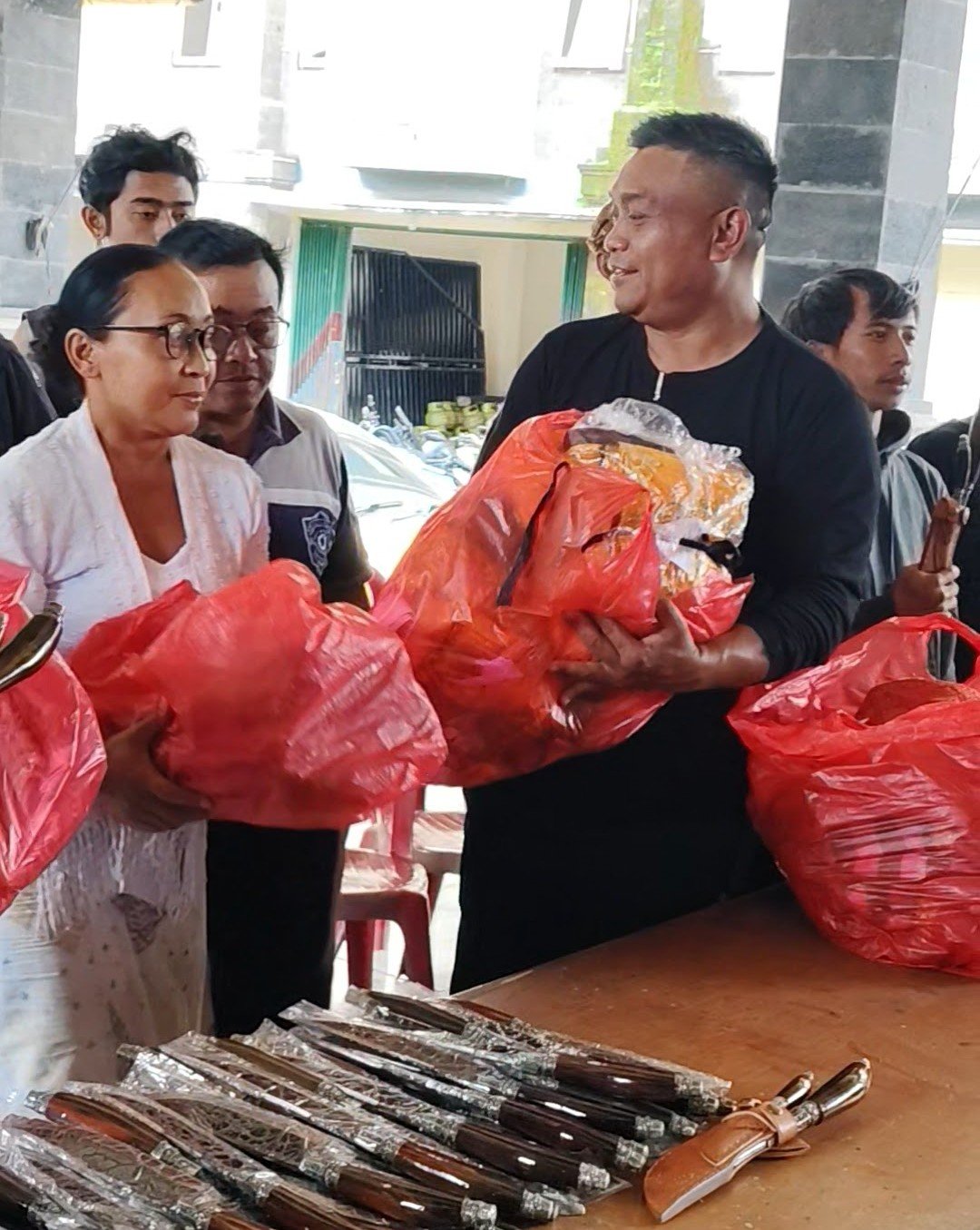 Bantuan berupa pisau golok, pengutik serta untuk membuat Banten ( Mejejaitan) kepada krane istri (Perempuan ) di Banjar Abing yang berjumlah 182 Kepala Keluarga (KK)